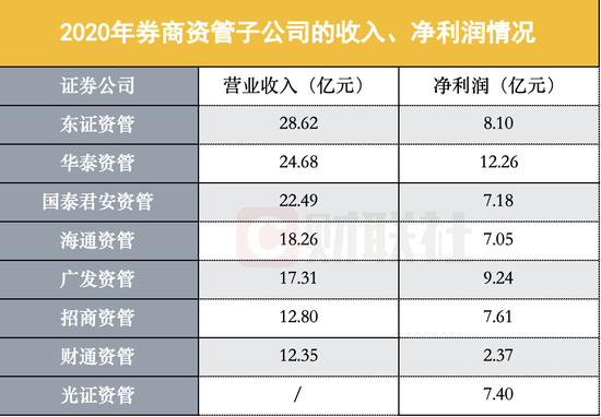 券商资管子公司中,东证资管2020年创收最高,而华泰资管净利润最高。