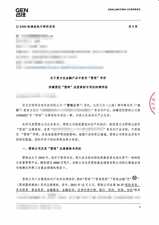 据记者了解,从5月13日起,雪球公司已向数十家用“雪球”命名旗下金融产品的机构递送了律师函,敦促这些机构立即变更产品名称,不再使用“雪球”字样。