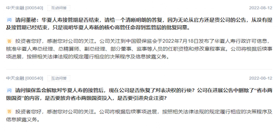 另外,此前由于谋求华夏人寿控股权,中天金融曾交付70亿元交易定金,但交易迟迟未能落地。近期,银保监会核准华夏人寿多名人员任职资格,被市场解读为是解除接管的信号。