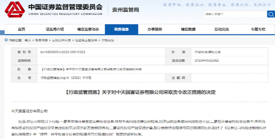 值得关注的是,今年6月,贵州证监局刚向中天国富证券作出责令改正的行政监管措施,涉及多项债券业务,具体包括: