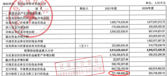 截至2021年末,公司支付给职工及为职工支付的现金为7.21亿元,2020年末为3.94亿元;应付职工薪酬为3.35亿元,2020年为3.60亿元。据此计算,2021年,首创证券员工薪酬福利总额为6.96亿元,同比增长16.52%,上年为5.97亿元。