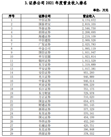 去年营收排证券公司第57名