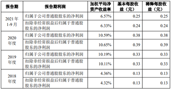 2018年-2020年及2021年1-9月,首创证券加权平均净资产收益率分别为4.36%、10.19%、10.59%、6.57%,基本每股收益分别为0.13元、0.33元、0.38元、0.25元。