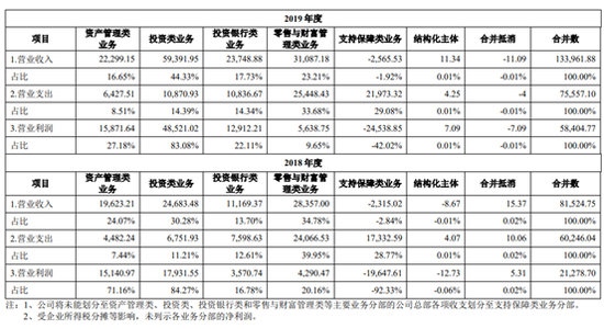 公司资产管理类业务主要包括资产管理业务、私募投资基金业务等,业务收入主要来源于管理费收入和超额业绩报酬收入,是公司重要业务之一。公司的投资类业务主要包括固定收益投资交易、权益类证券投资、另类投资以及新三板做市业务等。公司的投资银行类业务包括股票保荐及承销业务、债券承销业务、资产证券化业务和财务顾问业务等,投资银行类业务是公司主要业务之一。公司零售与财富管理类业务主要包括证券经纪业务、信用业务和期货业务等。