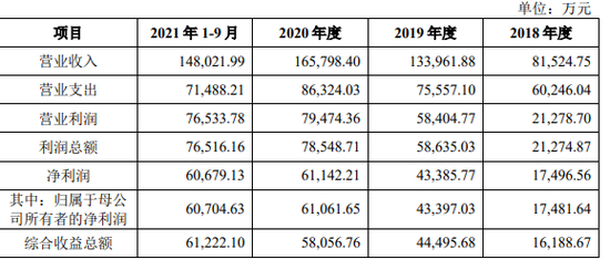 2018年-2020年,首创证券营业收入分别为81,524.75万元、133,961.88万元、165,798.40万元,净利润分别为17,496.56万元、43,385.77万元、61,142.21万元,归属于母公司所有者的净利润分别为17,481.64万元、43,397.03万元、61,061.65万元,经营活动产生的现金流量净额分别为-179,759.38万元、41,318.66万元、244,929.00万元。