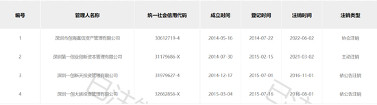 其中,第一创业的全资子公司深圳第一创业创新资本管理有限公司(简称:创新资本),在2021年3月主动注销了私募资质。而深圳市创海富信资产管理有限公司(简称:创海富信),在今年6月22日因失联被中基协注销。这家曾经的私募,在2014年7月完成备案。据第一创业2015年年报,原持股25.49%,2015年6月转让。
