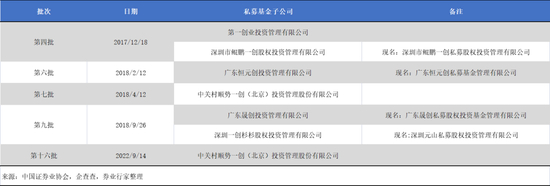 行家逐一查看了中证协公告,找到了第一创业旗下获批的私募基金子公司,因时间跨度较长,部分机构已经发生了名称和股权结构变更。