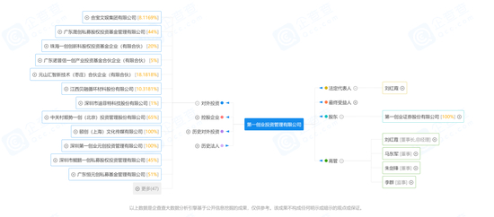 股权穿透信息显示,第一创业投资管理有限公司(简称:一创投资)为第一创业全资子公司。深圳市鲲鹏一创私募股权投资管理有限公司(鲲鹏一创)、广东恒元创私募基金管理有限公司(简称:广东恒元创)、顺势一创、广东晟创投资管理有限公司(简称:晟创投资)和深圳元山私募股权投资管理有限公司(简称:深圳元山),均为一创投资旗下控股子公司。