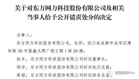 2022年8月,已经是“网力退”的东方网力,时任董事长赵丰,时任执行总裁邹洋,时任财务总监蒋超,均因2020年财务会计报告“涉及差错金额重大,导致净资产正负性质发生变化,情节严重”,被深交所公开谴责。