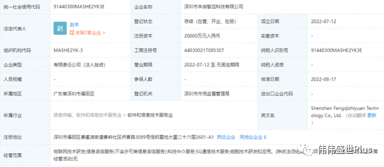 今年7月12日,丰启控股旗下新设了一家“小微企业”——深圳市丰启智远科技有限公司(简称:丰启智远),注册资本2亿元,实缴资本和参保人数均为0。