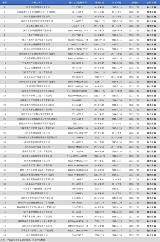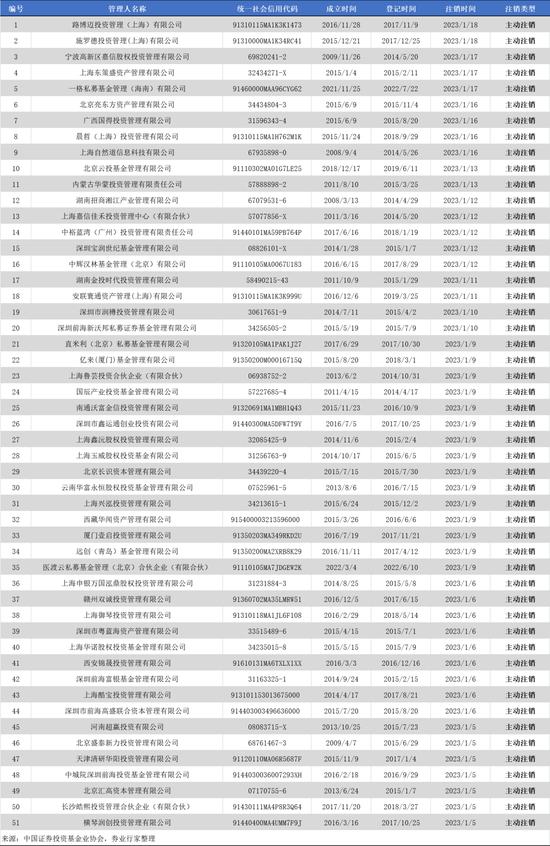 进入2023年,中基协列示的注销私募名单,已新增了102家。