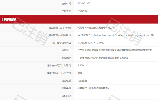 此外,2022年10月,中车资本旗下的中车金证(北京)基金管理有限公司(简称:中车金证),也主动注销了私募资质。