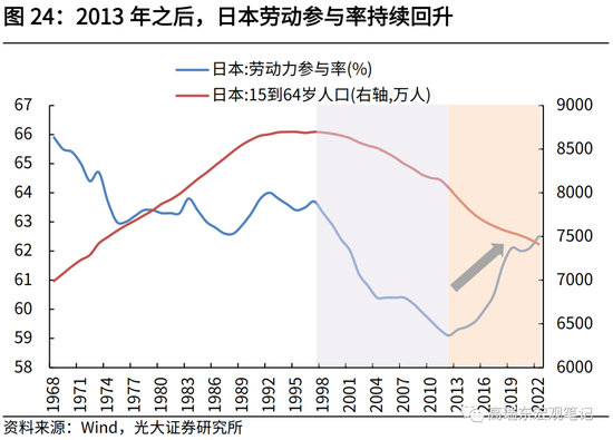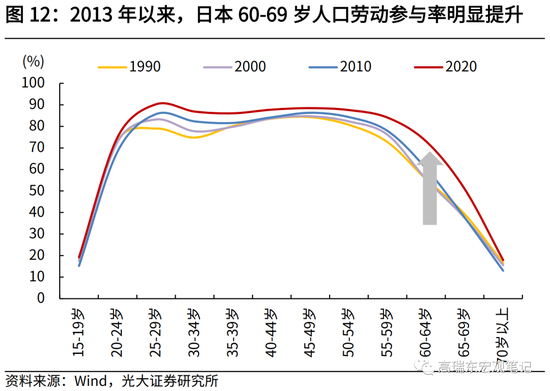 劳动力方面,日本60岁-69岁人口就业意愿较强,劳动参与率明显提升。