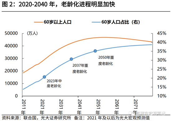 2020-2035年,我国老龄化进程提速,加速步入重度老龄化社会。