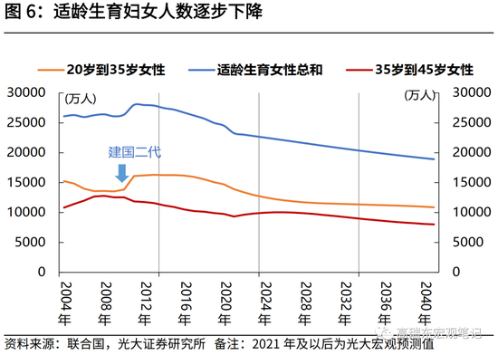 我国老龄化进程的加速,背后正对应着“建国一代”推动的“退休潮”。1962年-1975年间,我国年平均出生人数高达2600万人,共计3.7亿人,将在2020-2035年内,推动一轮庞大的“退休潮”。此后,由于1976年至1980年出生人口“塌陷”,年平均出生人数锐减至1800万人,叠加1985至1997年的“建国二代”婴儿潮的高度明显低于“建国一代”(年平均出生人数为2200万人),使得后期老龄化进程出现放缓。