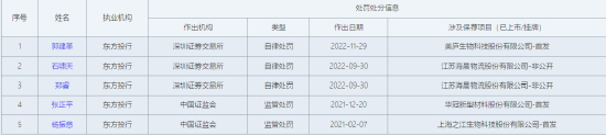 据中证协保代C类名单,2021年以来,东方证券有五位现任保代收到了监管处罚或自律处罚。