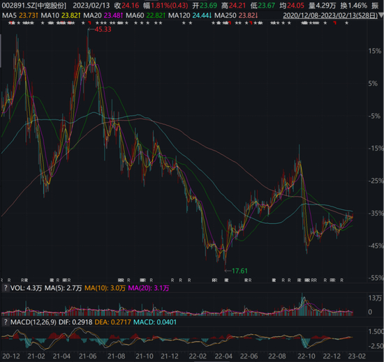 3月末,中宠股份发布公告,披露了截止今年3月28日的前十名股东及前十名无限售条件股东的持股情况。跟2022年三季度末披露的股东信息相比,混沌天成资管-葛卫东-混沌天成精选策略6号单一资产管理计划新进公司前十大流通股东名单,持有172.36万股,占公司总股本比例的0.59%,按照3月28日的股价23.94元/股来算,持股市值达到4126.30万元。