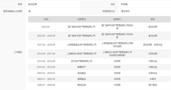 副总经理陈培峰女士,备案履历显示曾经在国信证券任职。