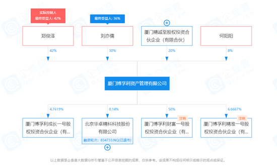 据中基协备案信息,博孚利资产的股东方包括三名自然人和一家有限合伙企业:董事长郑俊泽持股42%,刘亦儒持股30%,厦门精诚至股权投资合伙企业(有限合伙) (简称:精诚至)持股20%,总经理何阳阳持股8%。