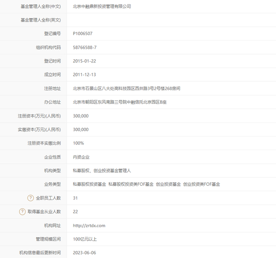 中基协备案信息显示,中融鼎新成立于2011年12月,2015年1月完成备案。旗下存续产品31只,管理规模超过百亿。