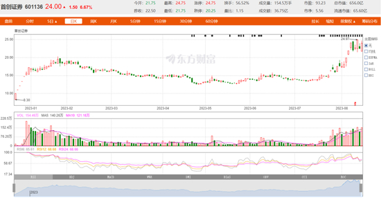 就在今天,券商板块先抑后扬再收跌。而次新股首创证券(601136.SH),一度上涨达到10%。
