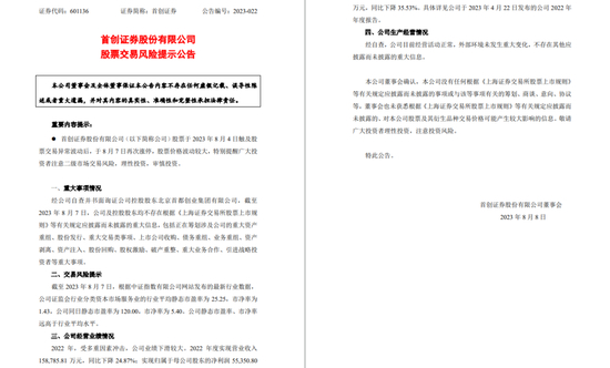 在此之前,首创证券已经两次发布股票交易异常波动公告。