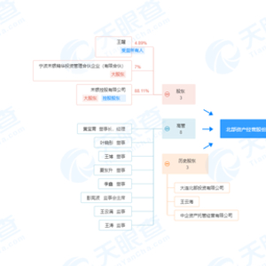 股权穿透显示,现有三家股东,禾银控股有限公司(简称:禾银控股)持股88.11%,宁波禾银精华投资管理合伙企业(有限合伙)(简称:禾银精华)持股7%;自然人王醒直接持股4.89%,连同由其控股的禾银控股及旗下禾银精华,合计实控比例为80.96%。北部资产旗下唯一一家参股子公司,为北天治北部资产管理有限公司(简称:天治北部),持股49%。
