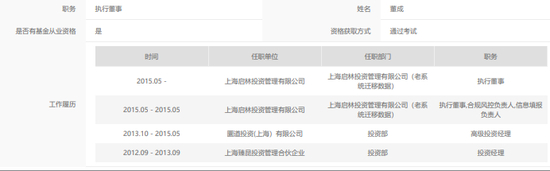 有着投资背景的执行董事董成,在加入启林投资前,曾是圜道投资高级投资经理。