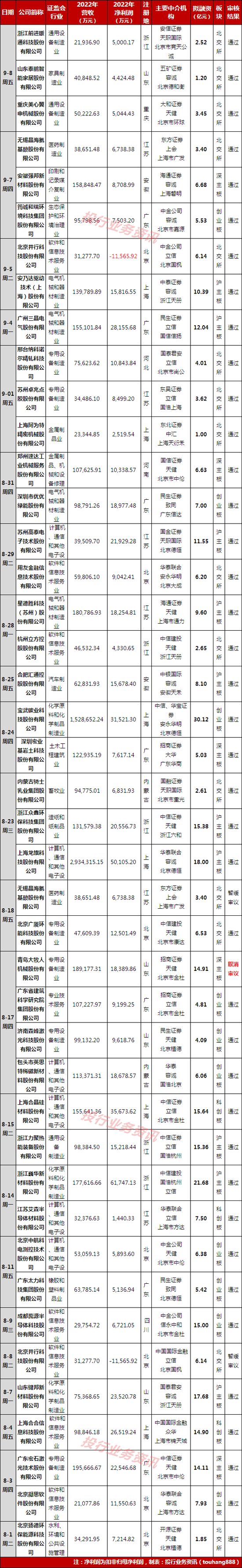 2023年8月至今IPO上会情况