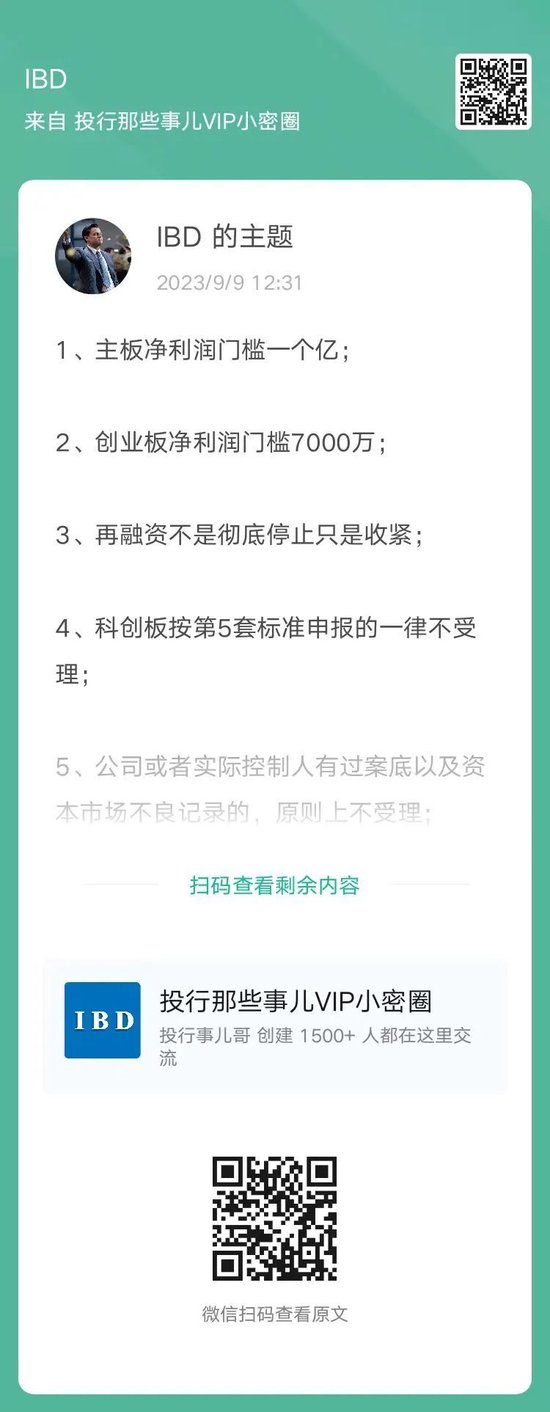1、主板净利润门槛1亿元;创业板净利润门槛7000万元。
