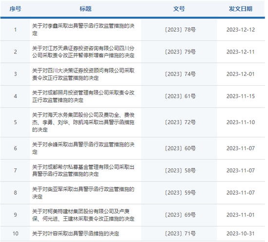 继对四川大决策证券投资顾问有限公司、江苏天鼎证券投资咨询有限公司两家证券投资咨询机构采取监管措施之后,四川证监局新增的监管处罚,剑指老牌机构国金期货有限责任公司(简称:国金期货)。