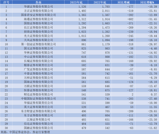 正值2024跨年,行家通过中证协从业人员数据,对2023年全年券商人员的变动进了统计。
