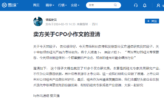 网传此次涨停是因为国信证券某通信分析师的荐股小作文。“今天旭创那边得到一个挺重要的产业点,旭创的硅光可能会碾压行业”。“后续故事,NV的人测试了800G硅光之后,说旭创的效果是碾压式的好,下了小批量订单。”
