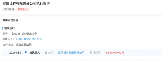 巨额!宏信证券被执行1.18亿