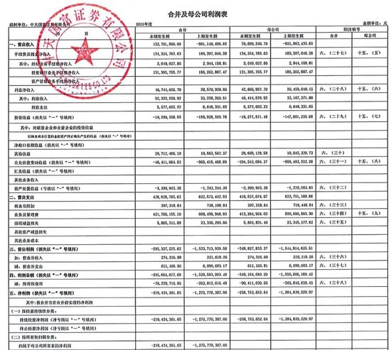 2023年,中天国富证券营业收入1.33亿元,2022年同期为-9.01亿元;归母净利润为-2.19亿元,2022年同期为-12.76亿元。