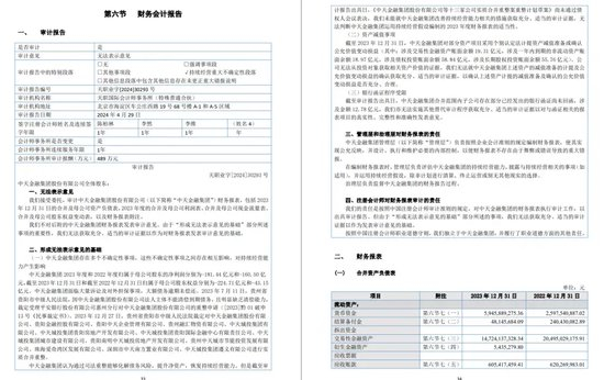 从2015年到2019年,信永中和会计师事务所(特殊普通合伙)(简称:信永中和)均对中天金融年度报告出具了标准无保留意见的审计报告。2020年和2021年,信永中和连续出具了带有保留意见的审计报告。而对2022年报,信永中和的结论是:“无法表示意见”。