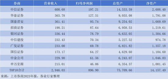 以2023年报披露的归母净利润计,TOP10上市券商分别是中信证券、华泰证券、国泰君安、招商证券、银河证券、中信建投、广发证券、国信证券、中金公司和申万宏源证券。