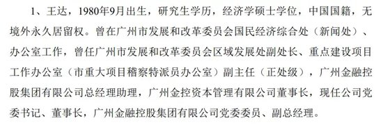 现年未满44岁的王达,为万联证券董事长,并且在股东方广州金控任党委委员、副总经理。