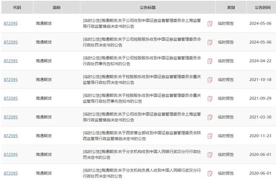然而,今年以来海通期货连续发布了涉及监管处罚事项的公告。