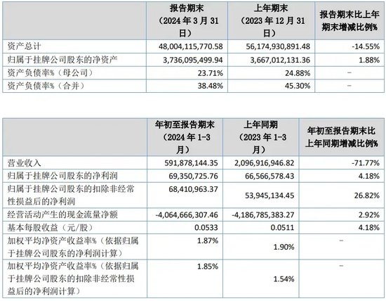数据显示,当期营业收入5.92亿元,同比下降71.77%。归母净利润0.69亿元,同比略增4.18%。