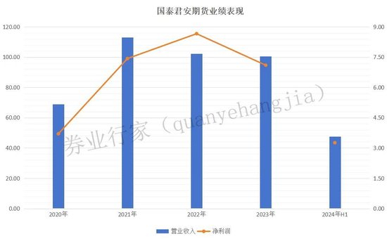 规模扩增的同时,国君期货的业绩在2023年和2024上半年均呈现下降态势。