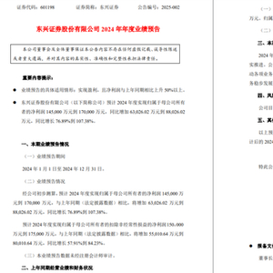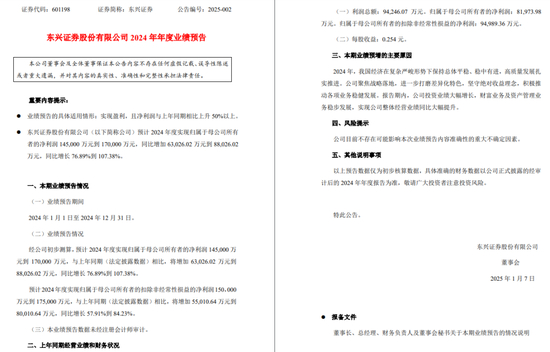 1月6日盘后,东兴证券发布了首份上市券商2024年度业绩预告。