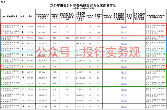此前在中注协发布的2023年度会计师事务所排名中,天职国际位列第7位:
