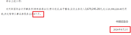 2024年8月2日,证监会下达〔2024〕78号行政处罚决定书,对奇信股份2015年至2019年年度报告审计机构天职国际责令改正,给予警告,予以没一罚六的处罚,并处暂停从事证券服务业务6个月。