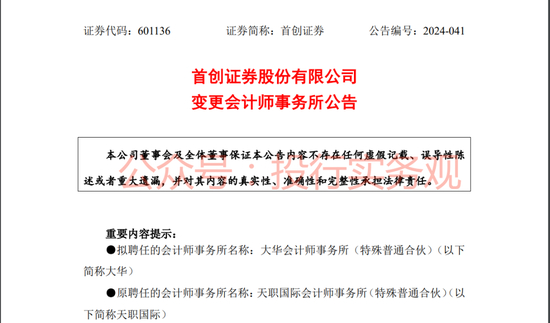 此外,2024年12月6日,首创证券宣布聘任大华会计师担任其2024年审计机构,大华此前因金通灵财务造假事件也被暂停执业,该所已于2024年11月10日恢复执业: