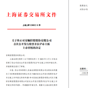 2月6日,上海证券交易所发出“红头文件”,终止对安顺控股股份有限公司(简称:安顺控股)首次公开发行股票并在沪市主板上市审核的决定。而这也是节后首次IPO撤单。