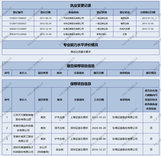 IPO文件载明,东海证券两名保荐代表人,均有相当的资历。
