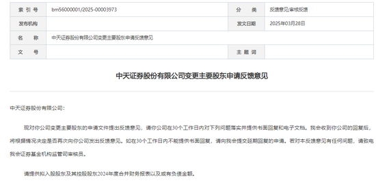 今年3月28日,证监会官网发布《中天证券股份有限公司变更主要股东申请反馈意见》。与此前部分券商收到多则反馈意见不同,证监会对中天证券的“易主”,唯一的反馈意见,“请提供拟入股股东及其控股股东2024年度合并财务报表以及或有负债金额”。