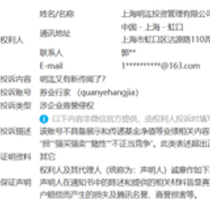 距行家在2024年3月1日发布《明汯又有新传闻了?》一文已有一年多时间,近期竟然收到了来自上海明汯投资管理有限公司(简称:明汯投资)的投诉,联系方式写着郭**和163邮箱。