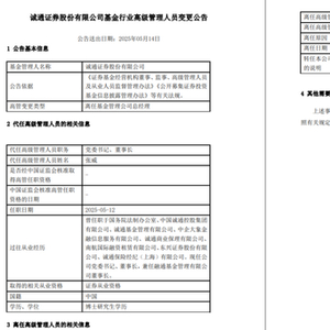 就在今天,诚通证券发布高级管理人员变更公告称:2025年5月12日,总经理叶顺德因“工作需要”离任,并且未转任公司其他岗位。现由诚通证券党委书记、董事长张威代任。这一消息发布之际,诚通证券官网同步变更了高管人员名单。